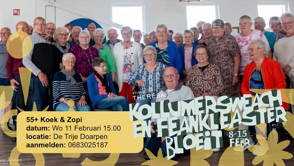 Elke maand van september tot juni worden er in Kollumersweach & Feankleaster door werkgroep 55+ een leuke middag voor de 55+ jarigen in onze dorpen georganiseerd. In de maand Februari