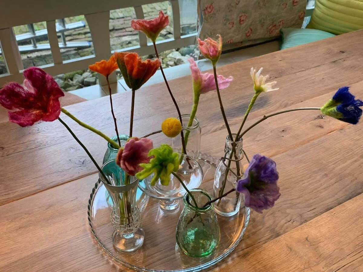 De Trije Doarpen Maandag 09.30 tot 12.00 uur Vol Workshop Bloemenvilten Ynske van Eastermar Bloeit komt naar Kollumersweach & Feankleaster Bloeit met haar workshop mooie duurzame bloemen van wol maken.