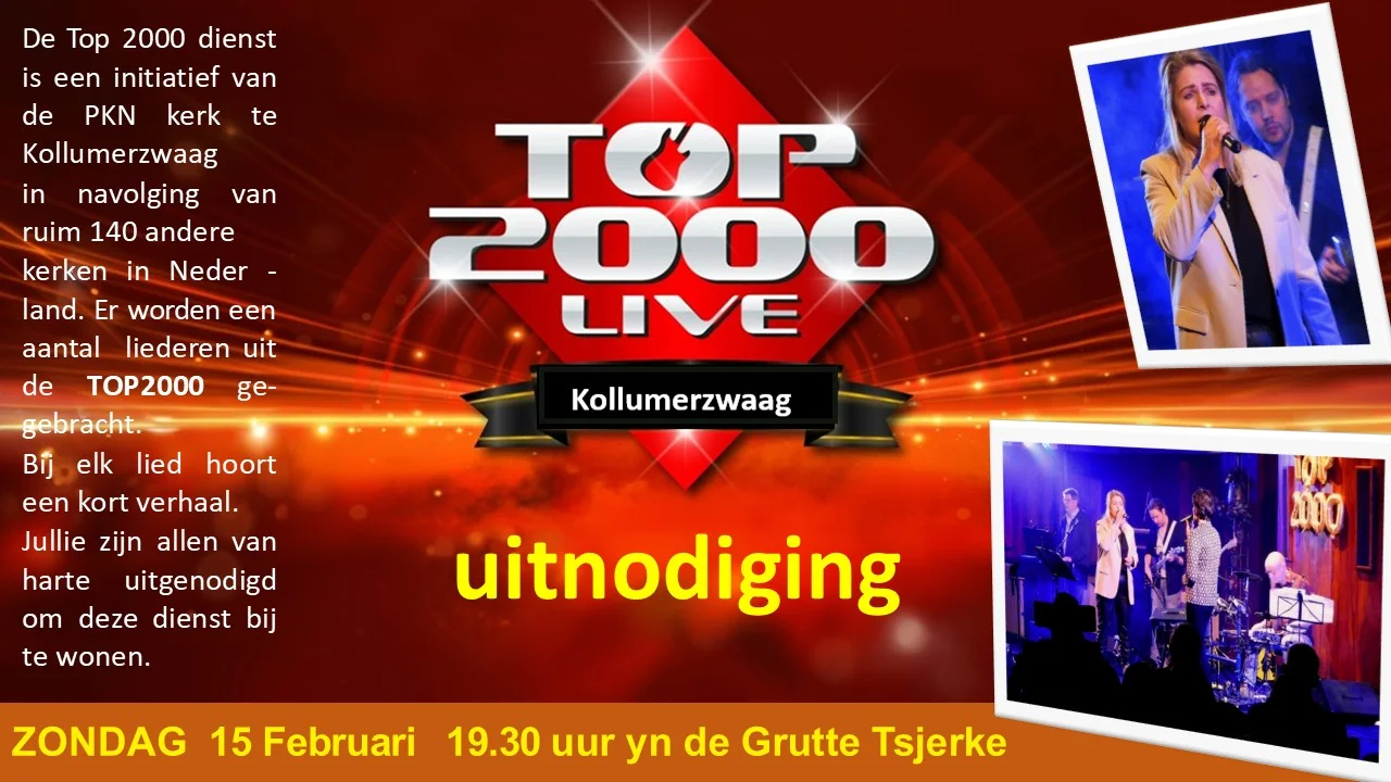 Top 2000 dienst op 15 Februari in Grutte Tsjerke Kollumersweach Aanvang 19.30 uur Heb je ook wel eens dat je bij het horen van een lied denkt aan iets speciaals, |