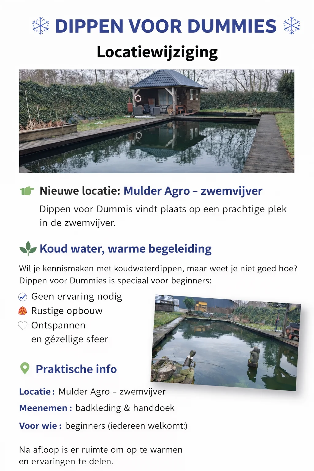 Mulder Agro, Foarwei 45 Zaterdag 10.00 ❄️ Dippen voor Dummies – Stap uit je comfortzone! ❄️ Ben jij klaar om jezelf fysiek én mentaal te versterken? Kom dan naar de mini-workshop Koudetraining