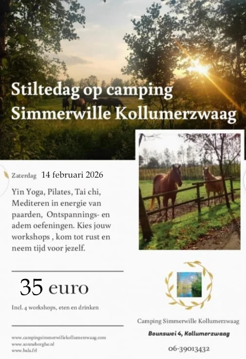 Camping Simmerwille Zaterdag 13:00 tot 17:00 uur Vol Ben jij toe aan ontspanning, een moment voor jezelf met heel veel rust? Komt dan naar een stiltedag op camping Simmerwille Kollumerzwaag.