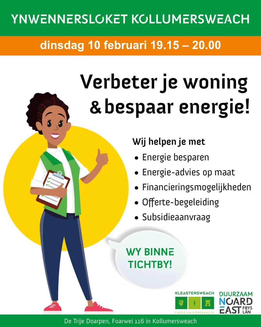 De Trije Doarpen Dinsdag 19.15 tot 20.00 uur 🔌 𝗬𝗻𝘄𝗲𝗻𝗻𝗲𝗿𝘀𝗹𝗼𝗸𝗲𝘁 𝗶𝗻 𝗱𝗲 𝗧𝗿𝗶𝗷𝗲 𝗗𝗼𝗮𝗿𝗽𝗲𝗻 – 𝗗𝗶𝗻𝘀𝗱𝗮𝗴𝗮𝘃𝗼𝗻𝗱 10 februari 🔍 Elke eerste dinsdagavond van de maand staat het Ynwennersloket in Dorpshuis De |