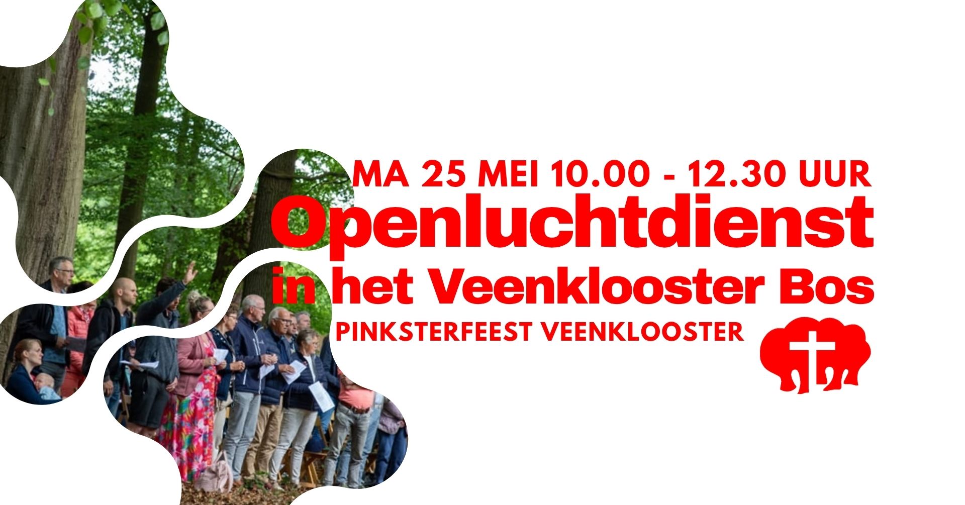 Maandag 25 mei 2026, 10:30 uur (inloop vanaf 10:00 uur)De Openluchtdienst in het bos is voor vele mensen het hoogtepunt van Pinksterfeest Veenklooster. Spreker: Nikolas van AmeromMuziek: Pearl Jozefzoon en